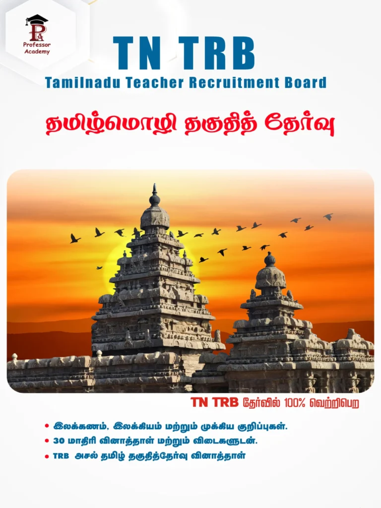 If your goal is to clear the UG TRB Exam and become a Government School Tamil Teacher in Tamil Nadu, Professor Academy offers a complete, syllabus-accurate and exam-oriented UG TRB Tamil Coaching Program. This course is carefully designed for TNTET-qualified aspirants who want clear explanations, strong language foundation, literary understanding, personalised mentoring, and a guaranteed progress pathway.