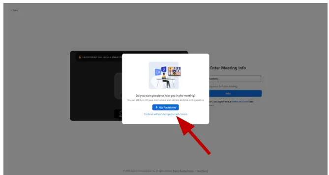 Click “Join with Computer Audio” or allow microphone access to enable audio.