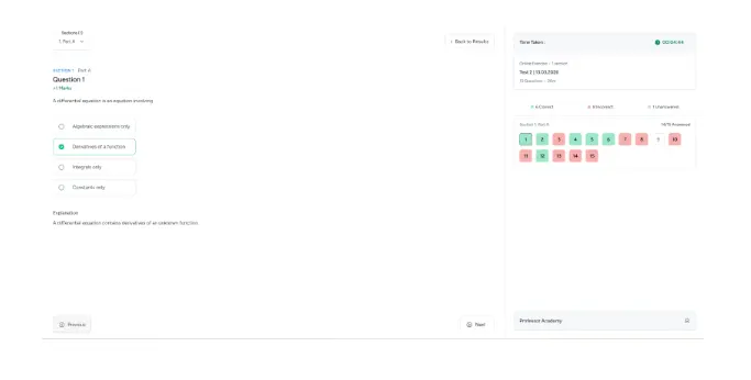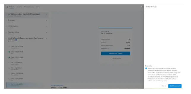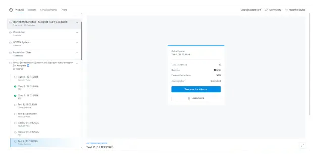 Click the unit for the class, notes and for test and Click on the test to attend it.